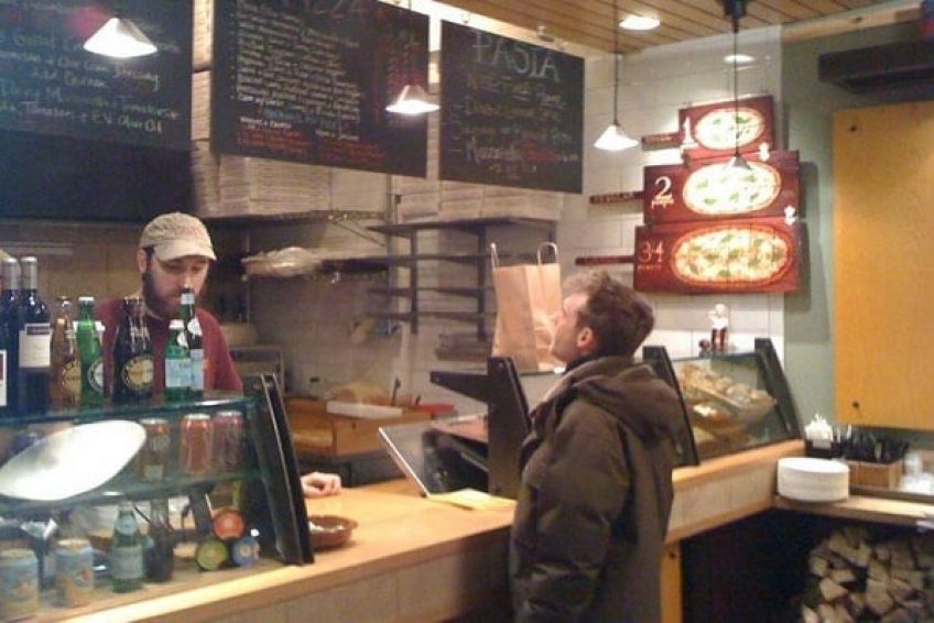 Tried this for the first time and it was pretty packed during lunch hour even on a rainy day.  Normally a good sign for the quality of the food.  I was not disappointed with the pizza.  I had the small sausage pizza.  The crust was nice and thin.  The pizza was still pliable even though it was very thin.  The sauce had a nice tang to it and wasn’t too sweet.  The only issue I had was that the edges of the pizza were a tad over-burnt.  For $8, it’s a great option for high quality pizza.