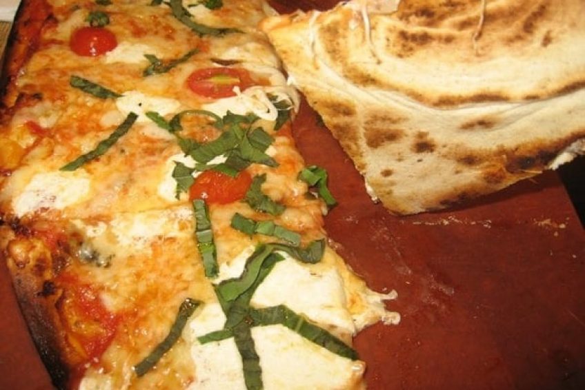 Waldy’s Pizza located on 800 Avenue of the America’s and it is an interesting pizza place as their pizza is not round it is more of a rectangle served up on a rectangular wooden plank. Pizza is thin and crispy right from a wood fired oven. Waldy’s has an inventive menu with something to for everyone. We ordered the arugula, garlic with sunny side up eggs on large pizza. The pizza was incredibly well done. Love the super thin crust with the artisan shape and clearly wood fired char your can taste. Great balance of sauce and toppings. Lots of choice on the menu so check out their website online for gourmet ingredients they use like wild mushroom and arugula, for example.