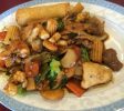 H 4. Happy Family lobster, shrimp, chicken, beef and pork sauteed with baby corn, broccli ad carrots, assorted vegetables in brown sauce.  9.50