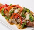 8. Sweet & Sour Sauce sautéed with garlic, cucumbers, pineapple, onions, bell peppers, scallions, tomatoes, baby corns and carrots.  11.50