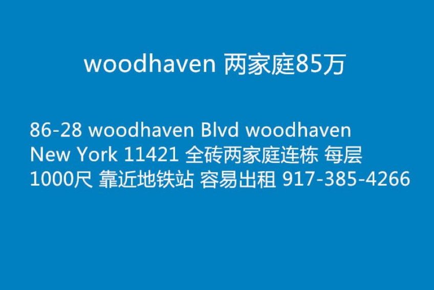 86-28 woodhaven Blvd woodhaven New York 11421 全砖两家庭连栋 每层1000尺 靠近地铁站 容易出租 917-385-4266