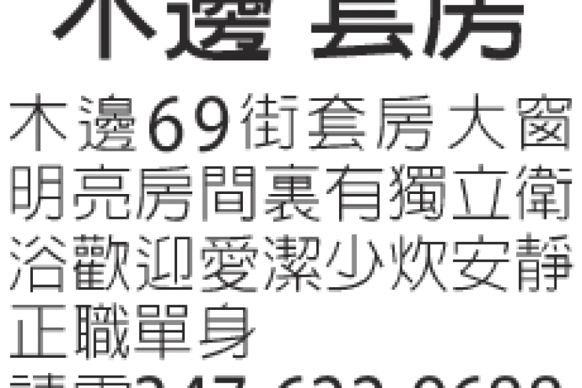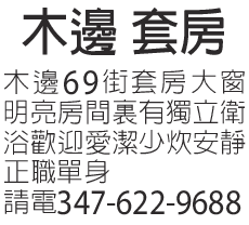木邊69街大窗明亮房間裏有獨立的衛浴。歡迎愛潔少炊安靜正職單身。電:3476229688