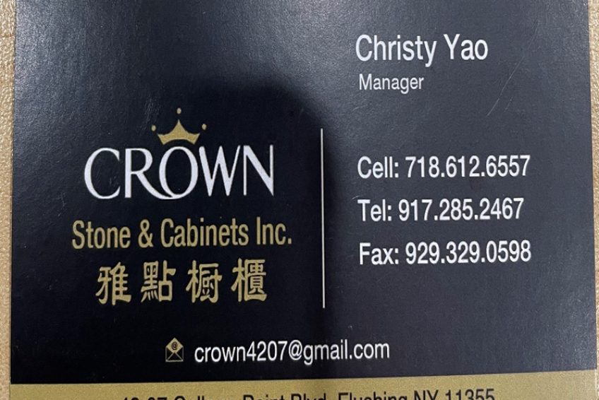 手机:718.612.6557电话:917.285.2467传真:929.329.0598邮箱:crown4207@gmail.com地址:42-07 College Point Blvd. Flushing NY 11355