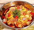 Spicy Pot With Lotus Root Vegetables Shrimp Sausage Potatoes And Chicken hot and spicy.  25.95