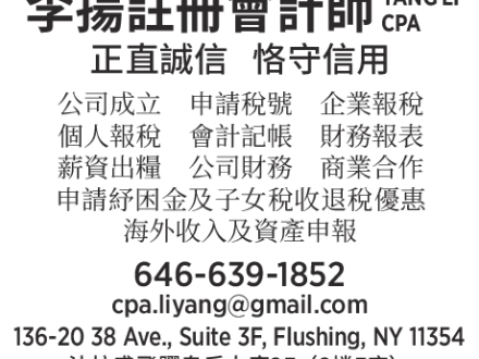【心安注册会计师事务所 CPA】 718-888-0136 ◆ 免费成立公司 ◆ 报税$20起 ◆