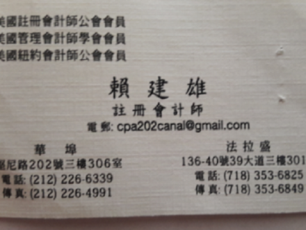 賴建雄 註冊會計師(718) 353-6825