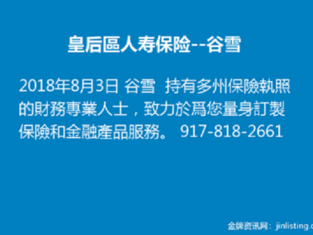 皇后區人寿保险–谷雪917-818-2661