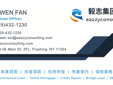 Eazzy Consulting LLC 毅志集团718-565-1234纽约不查收入贷款/法拉盛贷款银行
