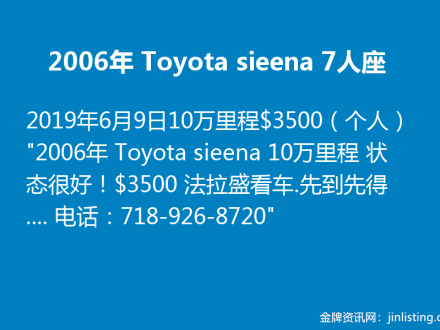 2006年 Toyota sieena 7人座 718-926-8720
