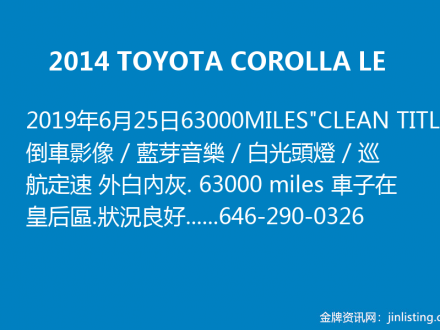 2014 TOYOTA COROLLA LE 646-290-0326