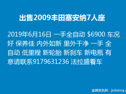 出售2009丰田塞安纳7人座 9179631236