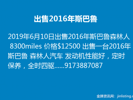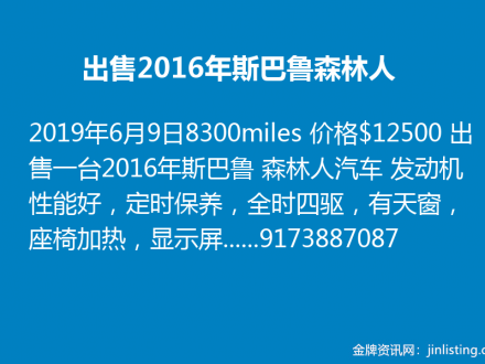 出售2016年斯巴鲁森林人 9173887087