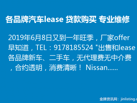 各品牌汽车lease, 贷款购买, 专业维修 9178185524