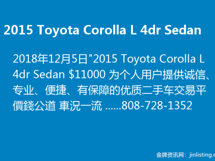 2015 Toyota Corolla L 4dr Sedan 808-728-1352