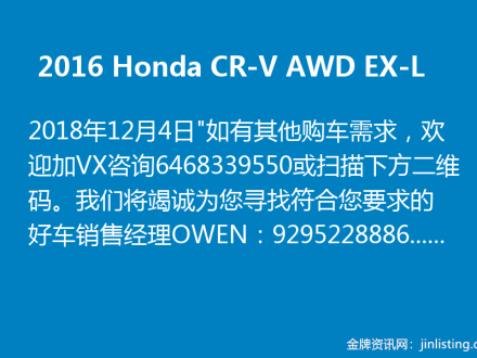 2016 Honda CR-V AWD EX-L 欢迎咨询646-833-9550