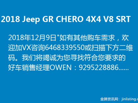 2018 Jeep GR CHERO 4X4 V8 SRT 欢迎咨询 646-833-9550