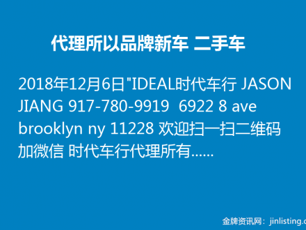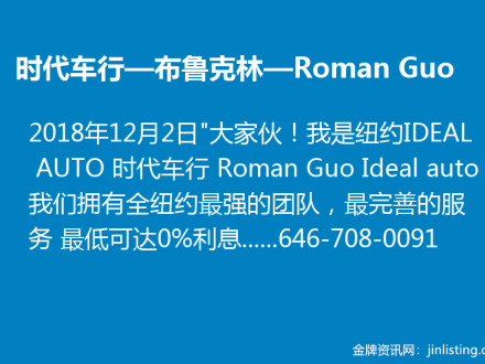 时代车行—布鲁克林—Roman Guo:新车 二手 租车 最低可达0%利息646-708-0091