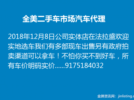 全美二手车市场汽车代理 万部现车任挑选!低于市场价拿车 917-518-4032