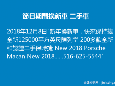節日期間換新車/二手車,來紐約保時捷車行獲優惠 516-625-5544