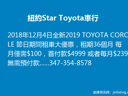 紐約Star Toyota車行,節日期間租車/買車便宜347-354-8578