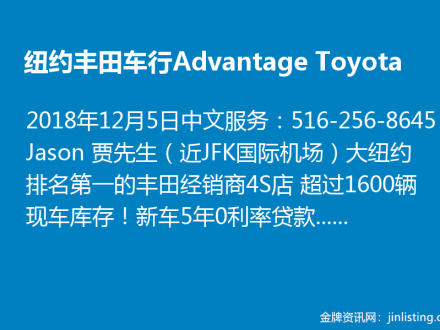 纽约丰田车行Advantage Toyota清仓新折扣 516-256-8645