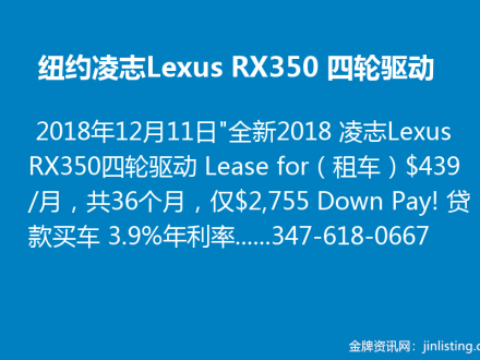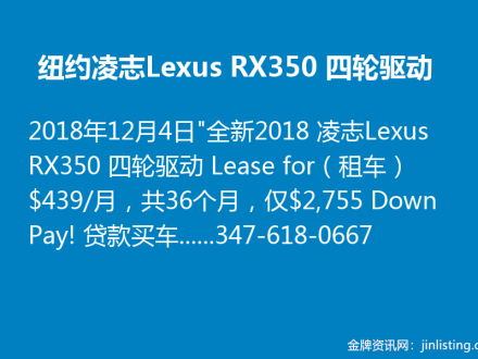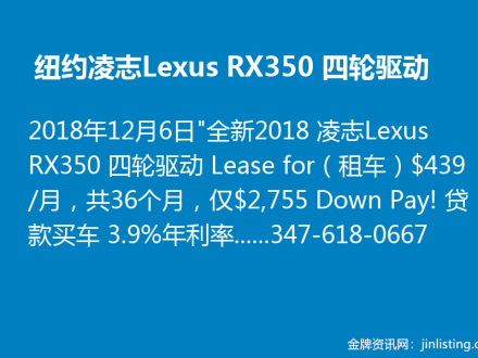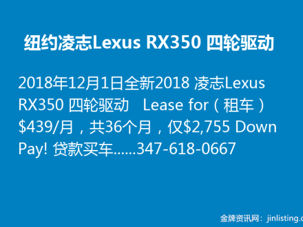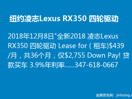 纽约凌志Lexus RX350 四轮驱动:347-618-0667