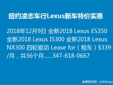 纽约凌志车行Lexus新车特价实惠 347-618-0667
