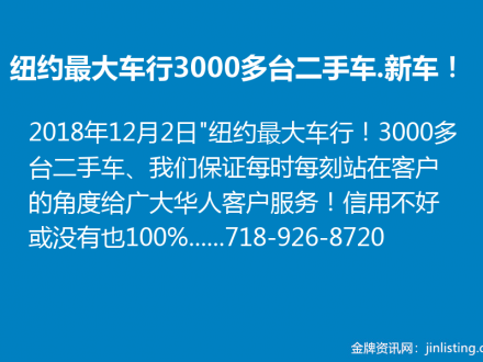 纽约最大车行!3000多台二手车.新车!718-926-8720