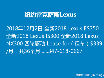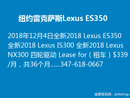 纽约雷克萨斯Lexus ES350 / IS300 / NX300 347-618-0667