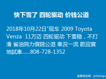 快下雪了 四轮驱动 价钱公道 想知道这神车 点进看车808-728-1352
