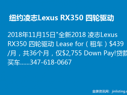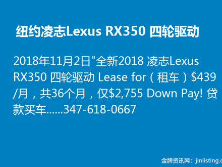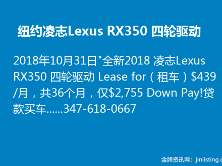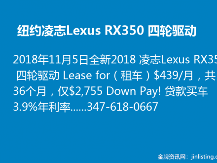 纽约凌志Lexus RX350 四轮驱动:347-618-0667