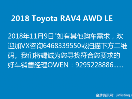 2018 Toyota RAV4 AWD LE 欢迎询价646-833-9550