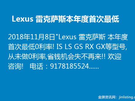 Lexus 雷克萨斯本年度首次最低 0利率! IS RX GS GX等等!917-818-5524