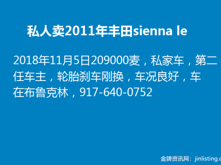 私人卖2011年丰田sienna le $4600 917-640-0752