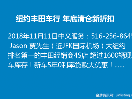 纽约丰田车行Advantage Toyota年底清仓新折扣516-256-8645