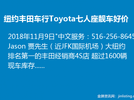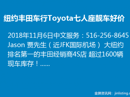 纽约丰田车行Toyota七人座靓车好价 516-256-8645