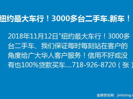 纽约最大车行!3000多台二手车.新车!718-926-8720