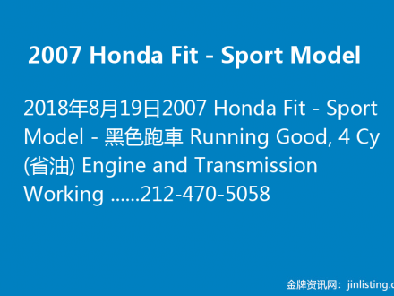 2007 Honda Fit- Sport Model – 特价212-470-5058
