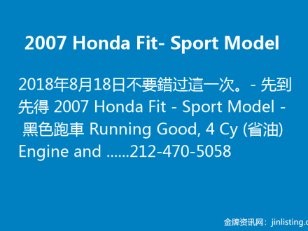 特價- 2007 Honda Fit Sport 212-470-5058