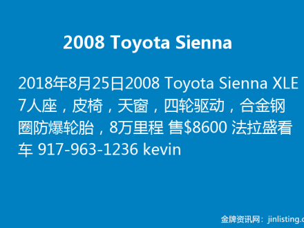 出售2008年丰田塞纳347-249-1759