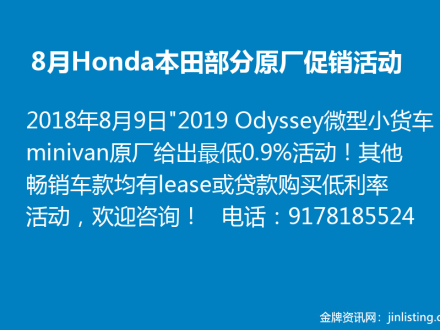 8月Honda本田部分原厂促销活动917-818-5524
