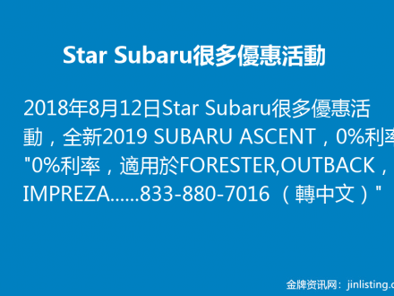 Star Subaru很多優惠活動 833-880-7016