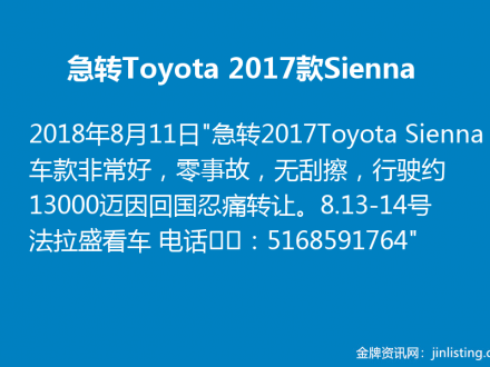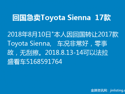 回国急卖Toyota Sienna 17款 516-859-1764
