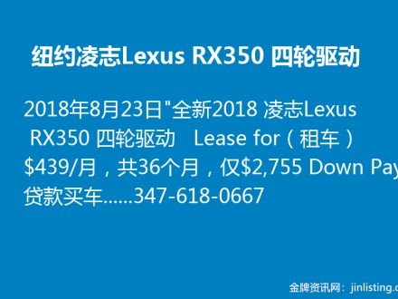 纽约凌志Lexus RX350 四轮驱动347-618-0667