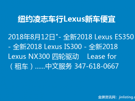 纽约凌志车行Lexus新车便宜 347-618-0667