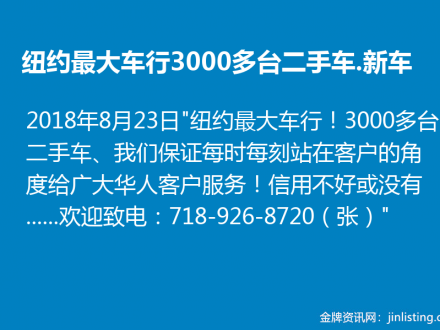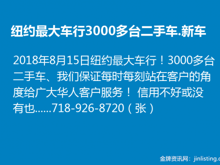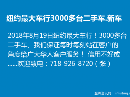 纽约最大车行!3000多台二手车.新车!718-926-8720