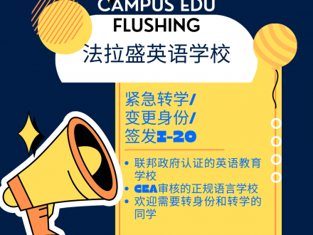 Campus Education Flushing: 法拉盛老牌语言学校, 快速转学,低价转身份