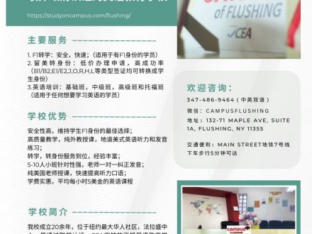 Campus Education 法拉盛语言学校 转学转身份/课程灵活/学费实惠
