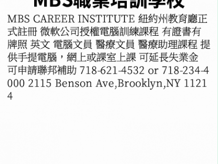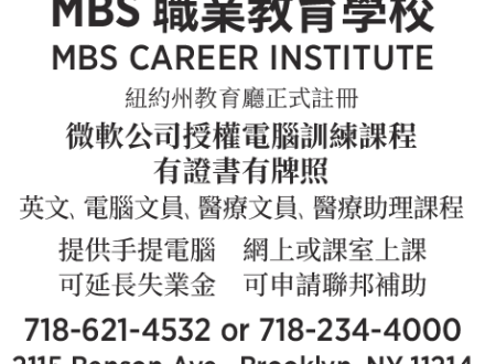 纽约职业培训学校/MBS纽约职业学校/低学费学校/英文培训(718) 234-4000