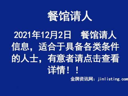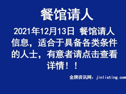 12月21日 餐馆请人